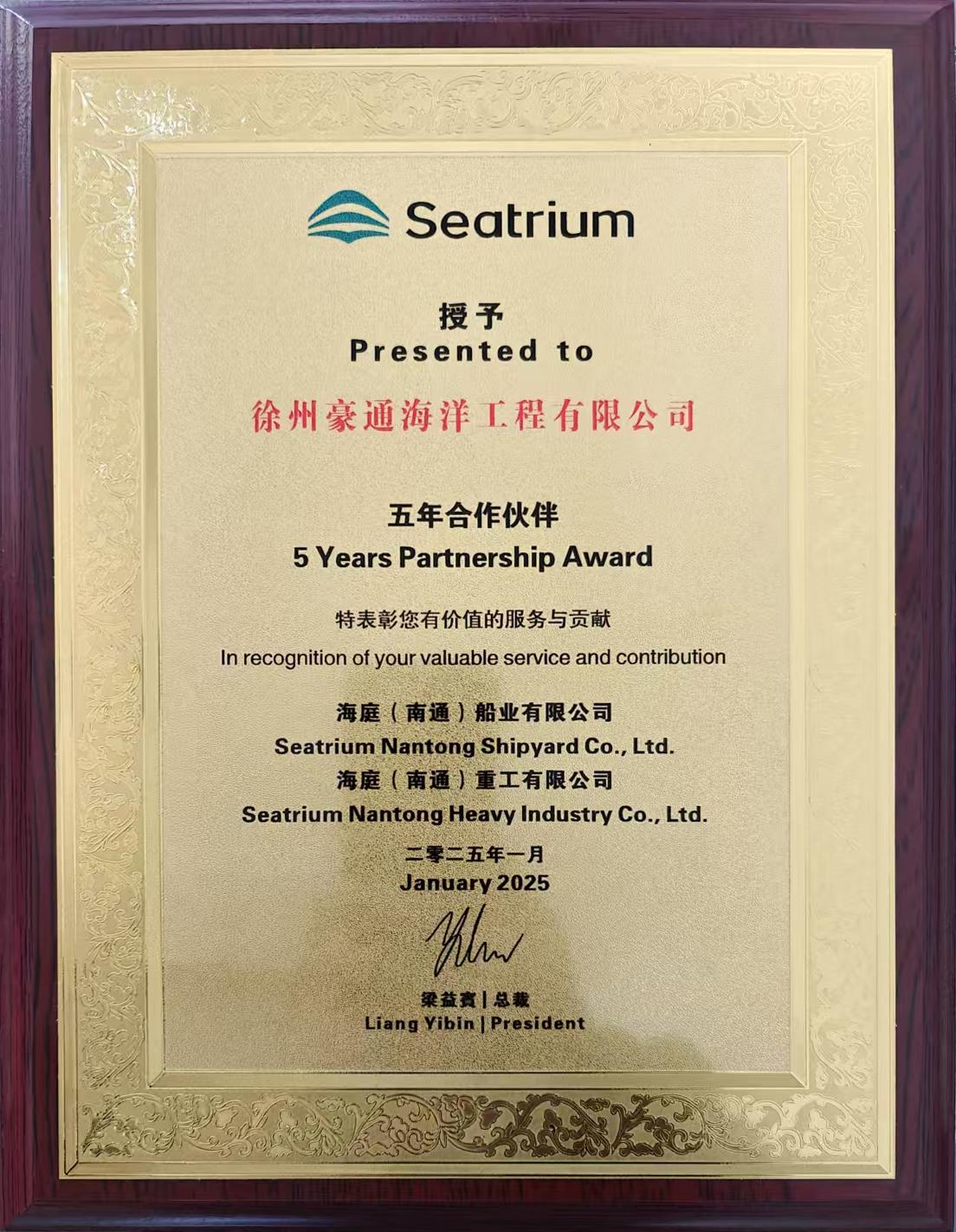 南通豪通船務獲上海振華重工啟東海洋工程股份有限公司2023年度“優(yōu)秀分包商”稱號